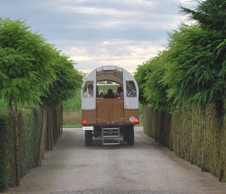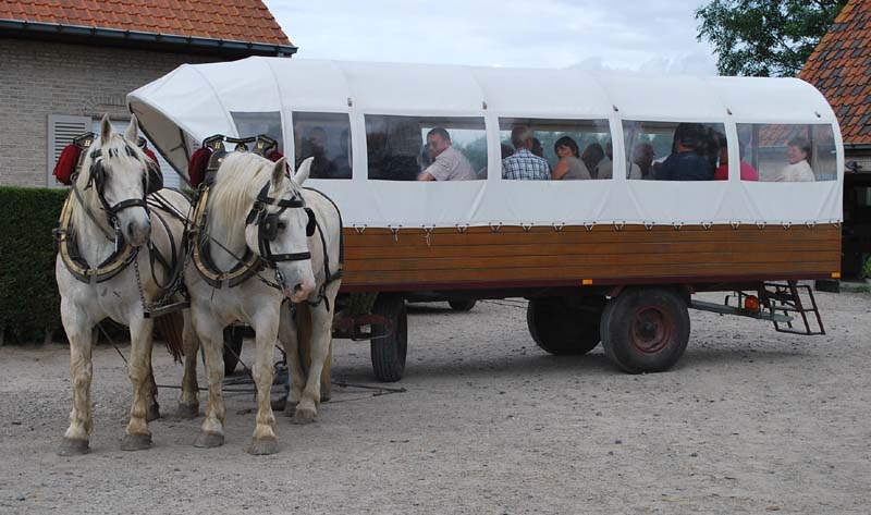 U kan een bezoek aan onze boerderij ook combineren met bv. een ritje met de huifkar: